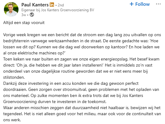 Jos Kanters Groenvoorziening is nu perfect voorbereid op hun groei in elektrische toepassingen en beschikt over een krachtige, duurzame energieoplossing op maat van hun activiteiten.
